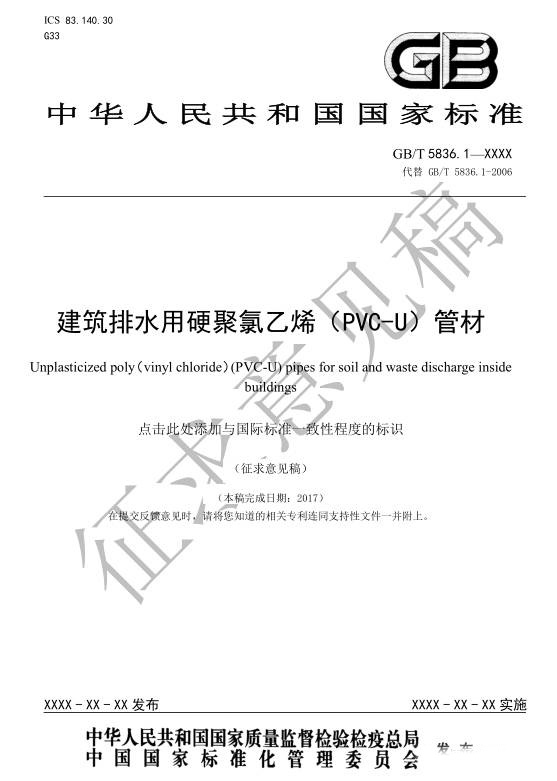 ——GB/T 5836.1—xxxx《建筑排水用硬聚氯乙烯(PVC-U)管材》;