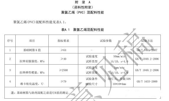 規(guī)定了PVC 樹(shù)脂應(yīng)符合 GB/T 5761-2006,K 值應(yīng)不小于 64.