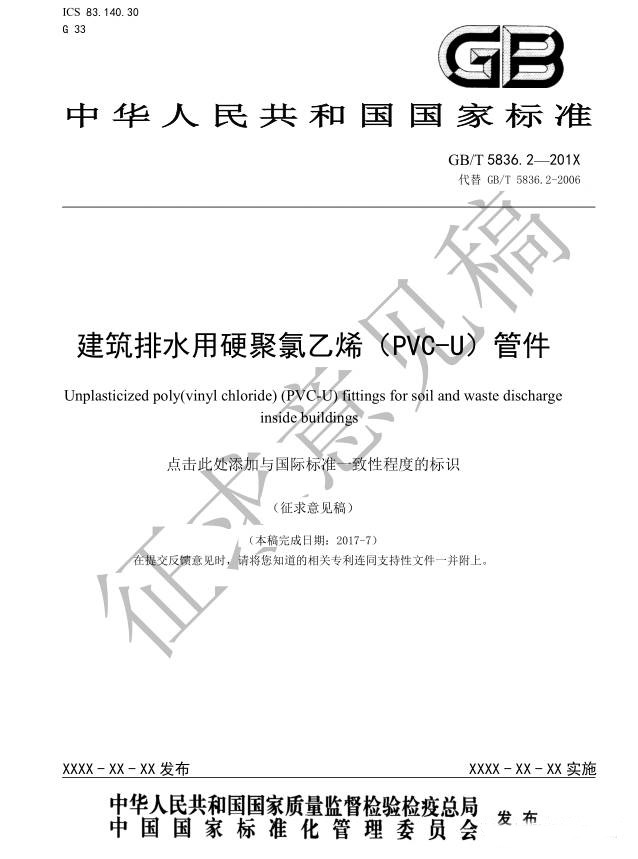 ——GB/T 5836.2—xxxx《建筑排水用硬聚氯乙烯(PVC-U)管件》。